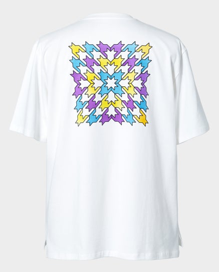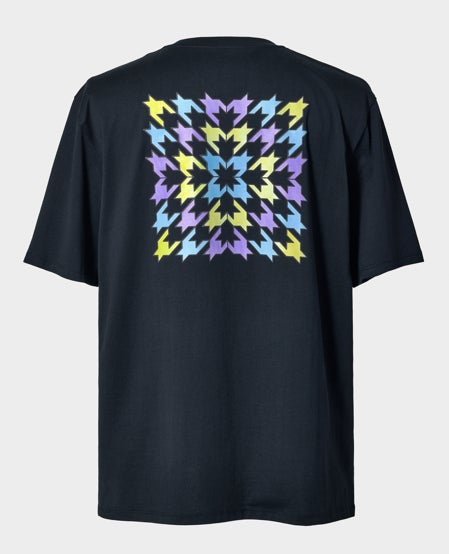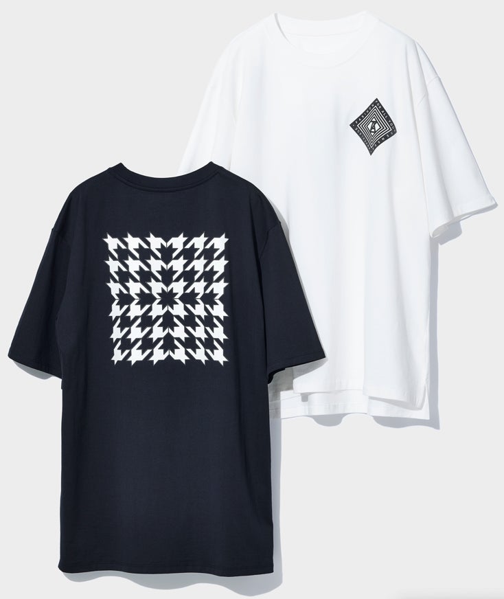 反響定位(視覚に障害がある方々の、自ら発した「音の反射」から景色を“見る”という行為)を、「触覚」と「視覚」で伝えるグラフィックTシャツ。左胸には360度で世界を知覚している反響定位を表すオリジナルロゴをデザインしたTシャツと、背面には全方位へ飛び立つ千鳥模様を、それぞれ触覚的に感じられるよう凹凸加工で表現。どちらもフォトクロミック技術により、太陽の光にあたると色が変化します。※天候・紫外線量などにより色の変化が異なります。※画像はイメージです