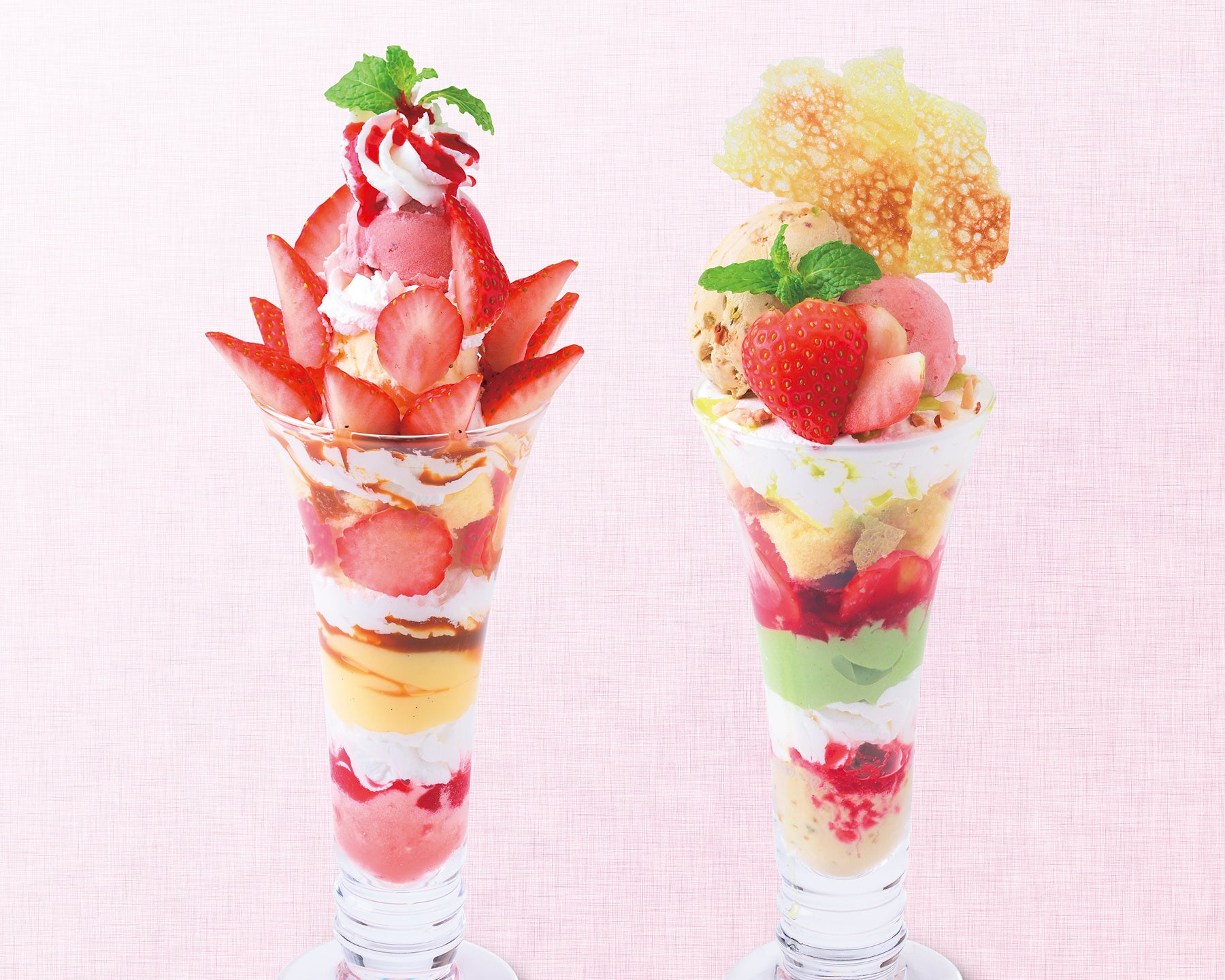 【銀座コージーコーナー】春色スイーツで、ひと足お先に春を楽しもう♪ 苺の新作パフェ2品とワッフルサンドが登場!