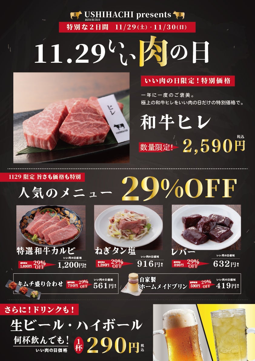 年に一度の『いい肉の日』はUSHIHACHI(ウシハチ)へ!11月29日(土)・30日(日)の2日間限定でお得なキャンペーンを開催