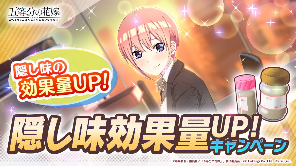 株式会社enish(本社:東京都港区、代表取締役社長:安徳 孝平、以下enish)は、2025年3月1日(土)より、アニメ「五等分の花嫁」初となるゲームアプリ『五等分の花嫁 五つ子ちゃんはパズルを五等分できない。』にて、らいはの食卓お料理コンテスト「ヒレカツ王選手権」を開催いたします。