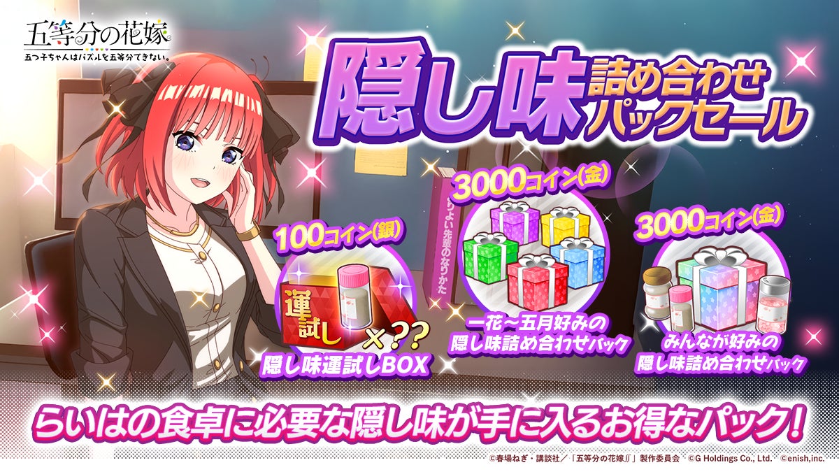 隠し味ブースト期間中に隠し味詰め合わせパックセールが販売中です。