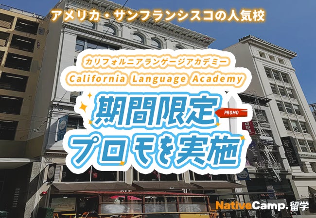 ネイティブスピーカーと回数無制限のオンライン英会話サービス「ネイティブキャンプ英会話」を展開する株式会社ネイティブキャンプ(東京都渋谷区 代表取締役: 谷川国洋)は、海外留学エージェントサービス「ネイティブキャンプ留学」において、アメリカ・サンフランシスコの人気校「California Language Academy San Francisco」にて、期間限定プロモを実施いたします。