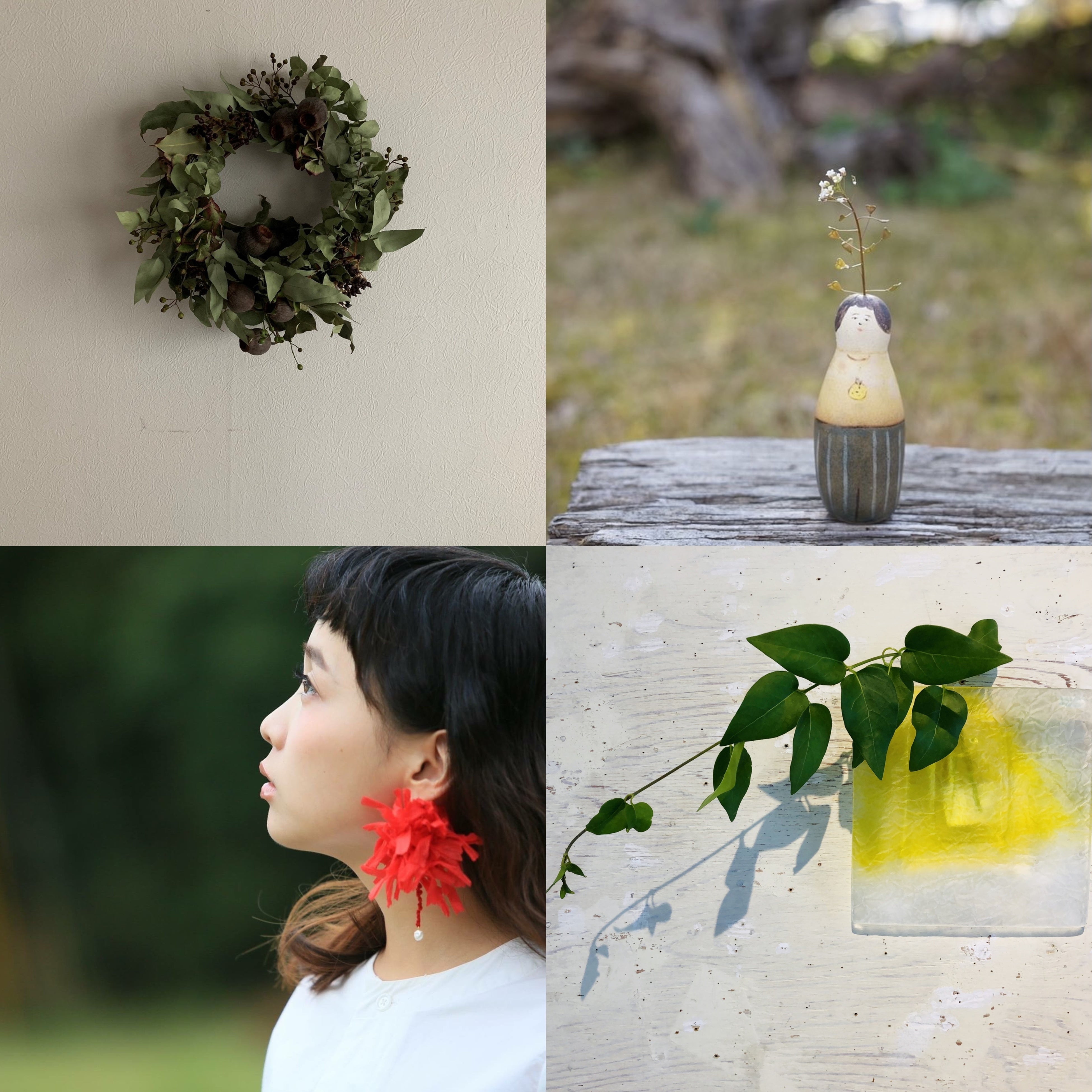 <ハローカルチャー3>大西未沙子/ガラス、Yoko Tokuichi/リース+スワッグ、jugo.r/アクセサリー、bimi/アクセサリー、honopottery/アクセサリー、Muffy Maki/絵画・アクセサリー、lovecycle/アクセサリー、Shoko Miyagawa/イラスト、松久玄/アクリル画、