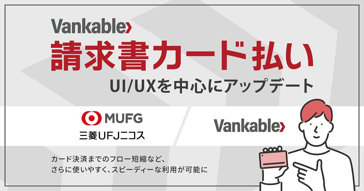 「新たな金融のカタチを創り出す」をミッションに掲げる株式会社バンカブル(本社:東京都千代田区、代表取締役社長:加藤 毅之、以下 バンカブル)は、2024年9月より正式に提供を開始した、BtoB取引の支払いをクレジットカードで延長できるサービス「Vankable 請求書カード払い」において、使いやすさを高め、さらに多くの事業者さまにご利用いただくべく、UI/UXを中心にアップデートしたことをお知らせいたします。