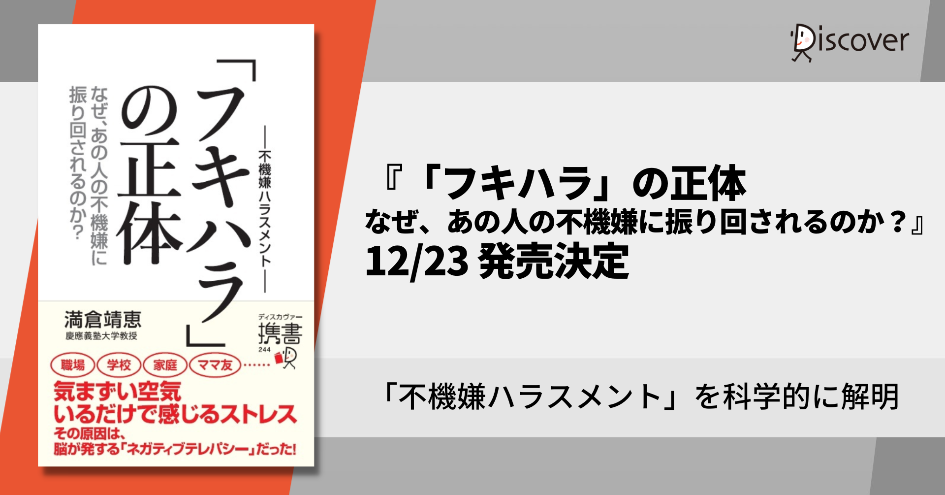 不機嫌ハラスメントの実態と対策を科学的に解き明かす!『「フキハラ」の正体 なぜ、あの人の不機嫌に振り回されるのか?』12/23発売決定