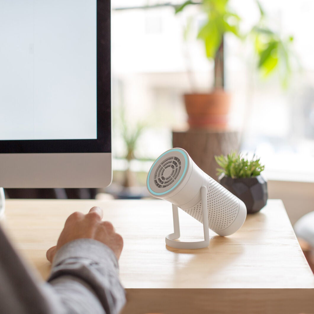 Wynd(ウィンド)は、アレルギーの原因物質の1つであるホコリ、カビ、花粉、煙や汚染を除去し、有害物質から空気を浄化するスマートな空気浄化機です。500mlのペットボトル程の大きさで、約450グラムと持ち運びやすいサイズなので、オフィス・ホテル・車・交通機関など様々な場所で気軽に使うことが出来ます。バッテリー搭載で、最大8時間連続稼働することができます。常にあなたの周りの空気をWyndのセンサーが監視し、Wyndアプリに空気の汚染レベルを色で教えてくれます。