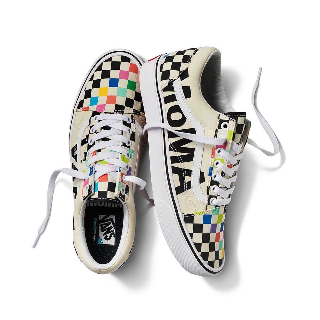 Vansのアイコンであるチェッカーボードパターンを、鮮やかに大胆な色でカラフルにアレンジしたコレクション。最新のフットウェアコレクションであるComfyCushのOld Skoolのシルエットに、VansとMoMAのロゴがあしらわれます。