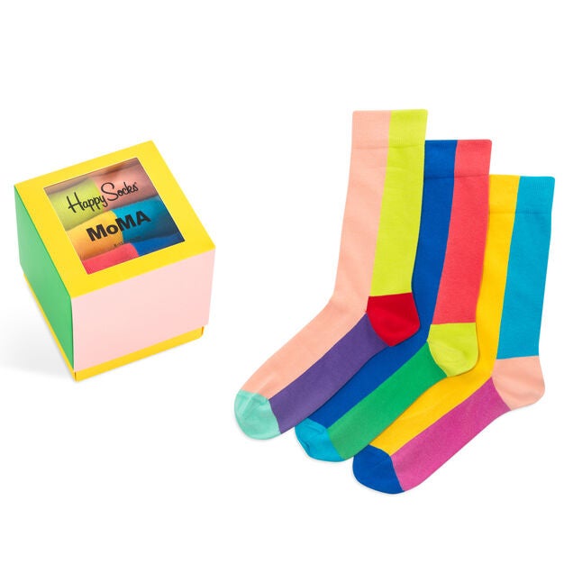 2019年のニューヨーク近代美術館リニューアルオープンを記念した限定ソックスセットです。Happy Socksとコラボレーションした靴下は、ブロッキングされたポップなカラーのデザインでソール部分にさりげなくMoMAのロゴをあしらっています。プレゼントにもおすすめなカスタムボックスに入った3足セット。