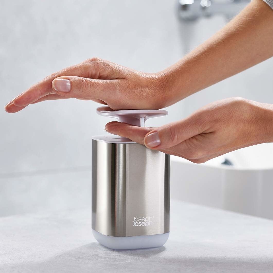 手を洗いたいのに汚れた手のひらではソープディスペンサーを押したくない。そんなあなたにぴったりなのが、このJoseph Josephプレストソープディスペンサーです。オーバーサイズのポンプヘッドで手首や腕でも押しやすいデザイン。