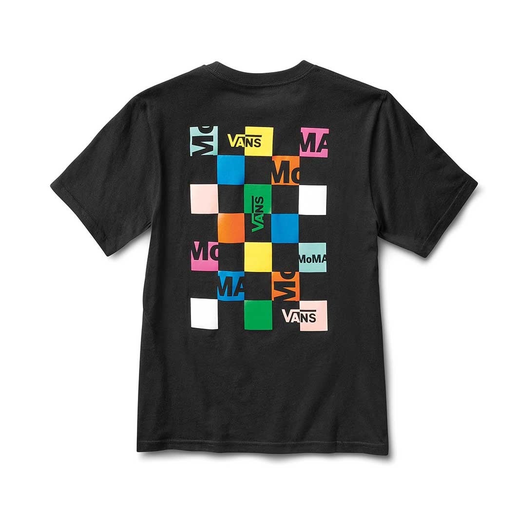 Vansのアイコンであるチェッカーボードパターンを、鮮やかに大胆な色でカラフルにアレンジしたコレクション。胸元にはVansとMoMAのロゴ、背面にはMoMAのグラフィックを落とし込んだボーイフレンドTシャツです。