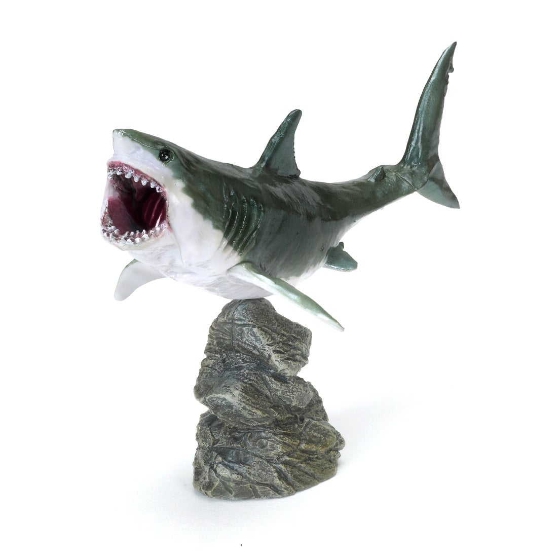 いきもの大図鑑ミニコレクションからサメが登場!全長約100㎜のホホジロザメのほか、シュモクザメなど、本物そっくりの造形と彩色にこだわりました。全4種でお届けします。 価格:500円/1回(全4種) ©BANDAI |