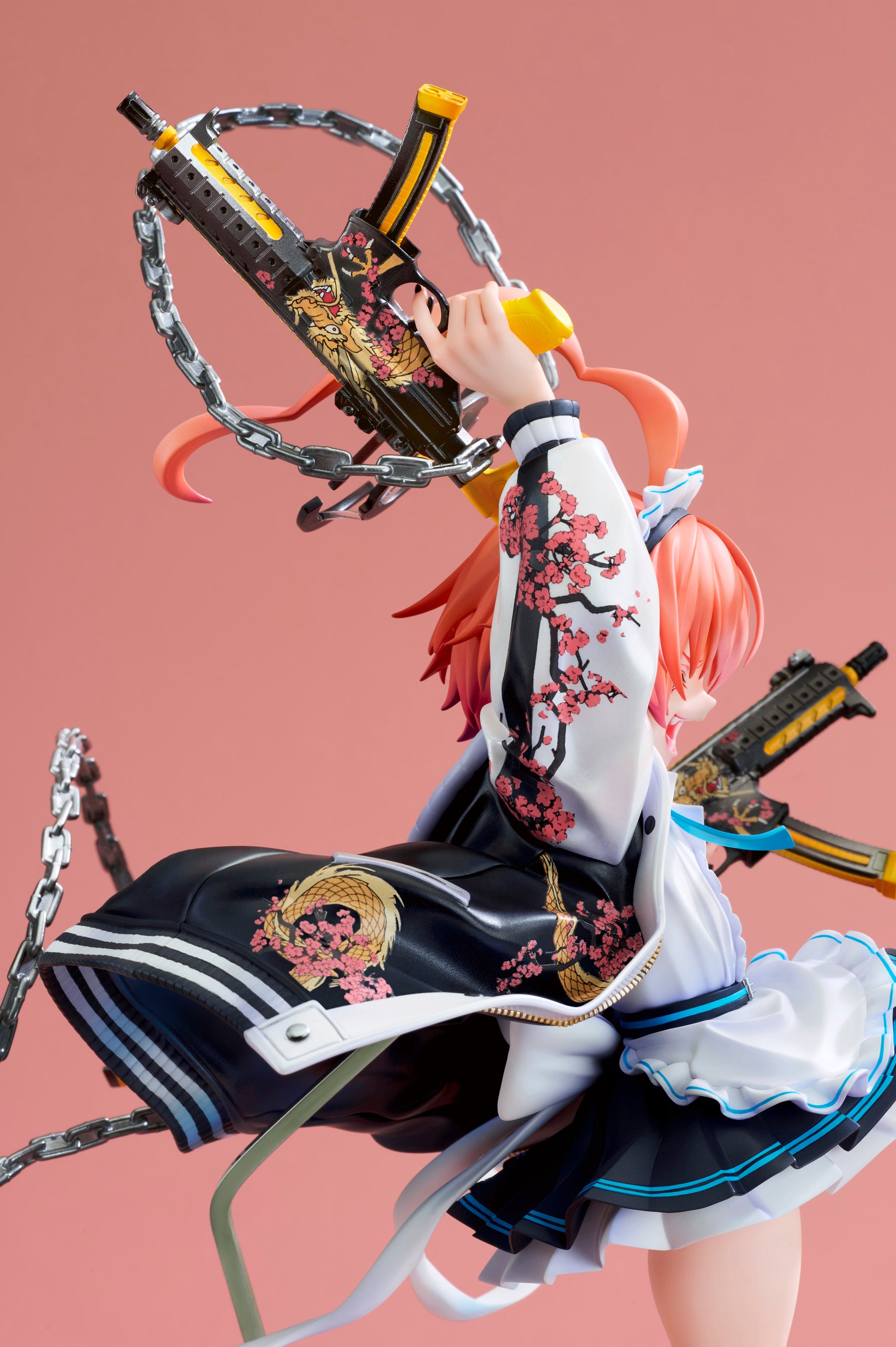 メイド服の上に羽織ったスカジャンは、パール塗装による独特の質感表現に加え、背面や袖に施された刺繍まで丁寧に再現。