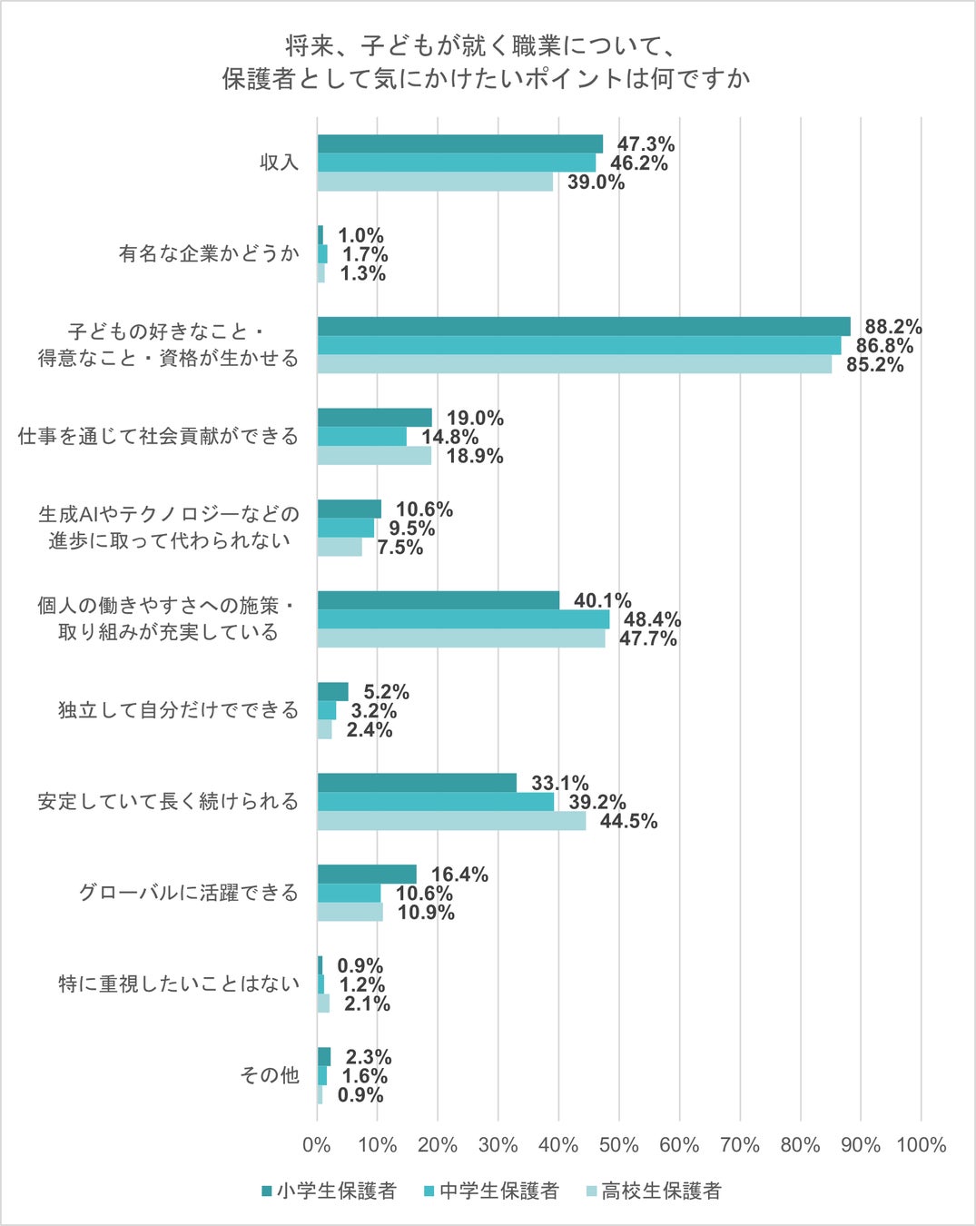 将来、子どもが就く職業について、保護者として気にかけたいポイントは何ですか。
