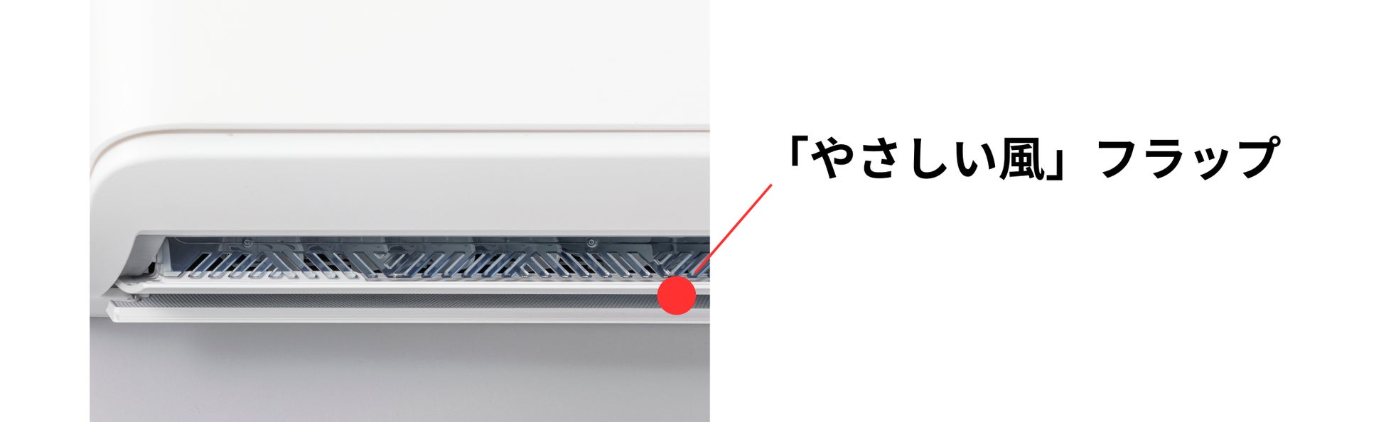 エアコンの冷気が直接身体に当たり、寒さを感じることで睡眠が妨げられるお悩みに応え、新商品は「やさしい風」フラップを搭載しました。この機能により、冷房時でも直接的な風を感じることなく、自然な風のような心地よさを実現。エアコンの風が苦手な方も安心してご利用いただけます。