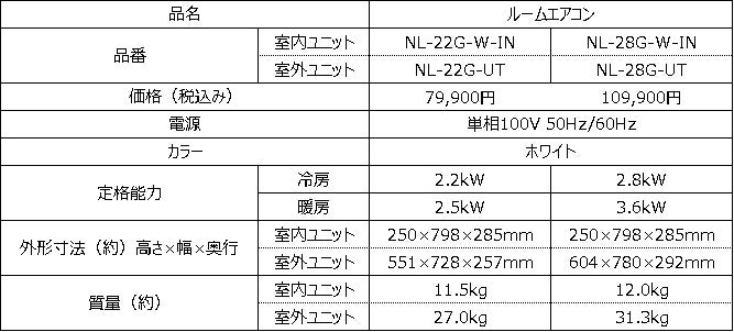 【商品名】エアコン 6畳用 (NL-22G-W)