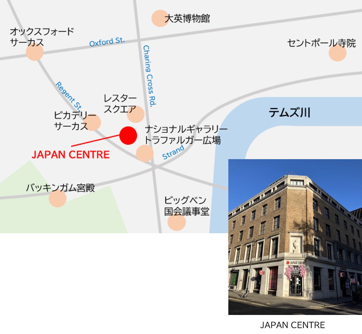 〇JAPAN CENTREフラッグシップストアはロンドンの中でも多くの方が行き交う中心的な場所に位置