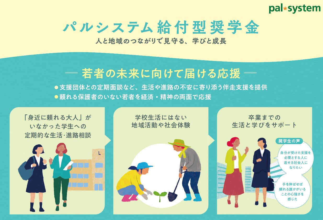 パルシステム連合会とグループ10生協が設立した、一般財団法人パルシステム若者応援基金(本部:新宿区大久保、理事長:渋澤温之)は11月、返済不要の奨学金給付対象者12人を新たに決定しました。奨学生は延べ109人となりました。パルシステムの奨学金制度は、地域で連携する支援団体との卒業まで見守りの仕組みが特徴で、2025年度グッドデザイン賞を受賞しています。