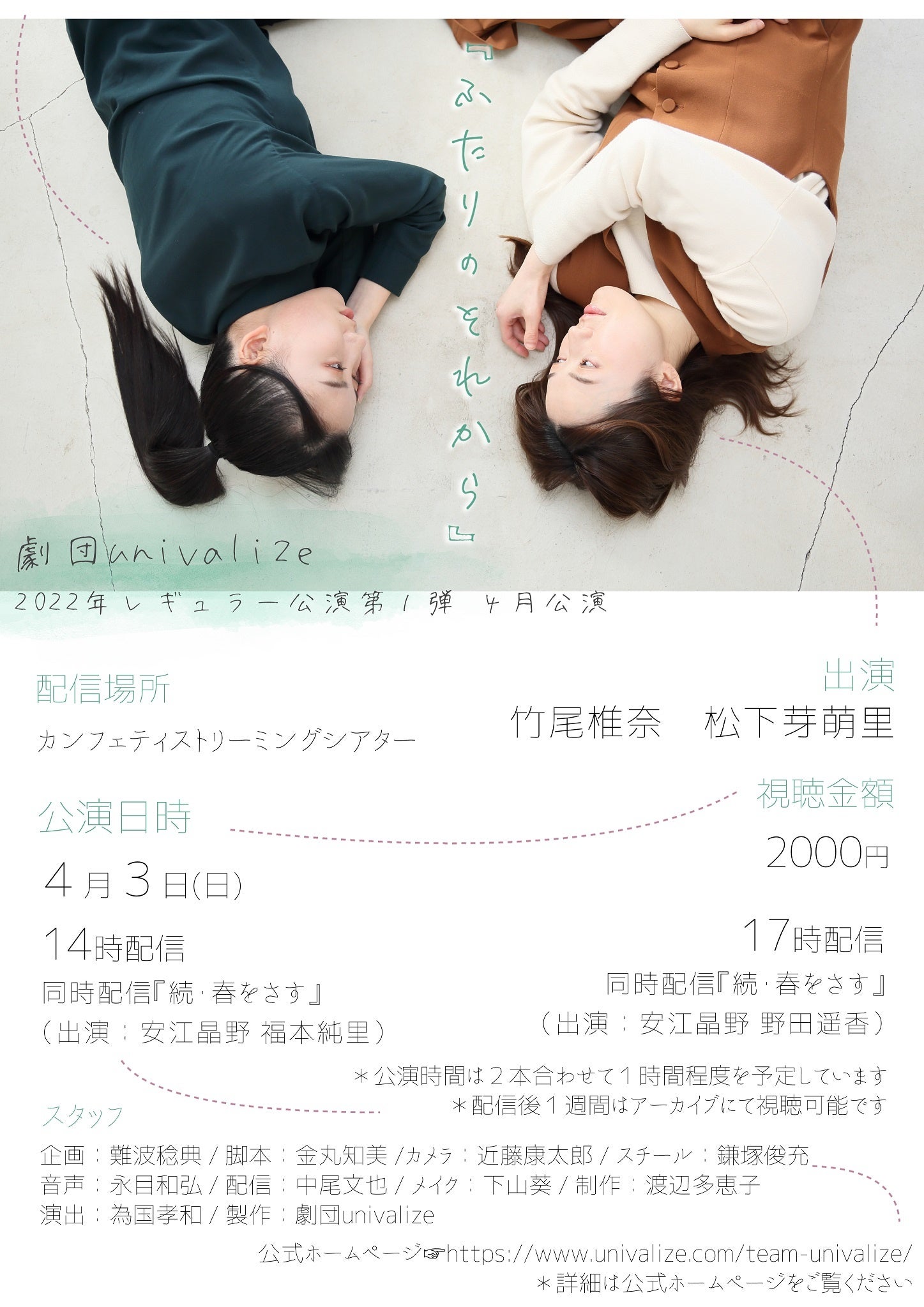 演劇を"ライブ"で見せる 配信専門劇団univalize2022年レギュラー公演『ふたりのそれから』&『続 春をさす』4月配信決定 カンフェティでチケット発売