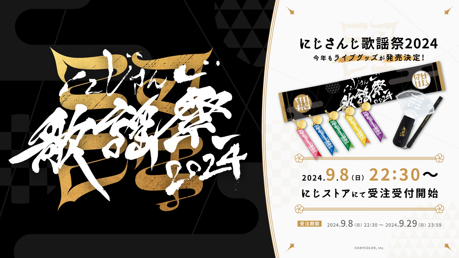 「にじさんじ歌謡祭2024」グッズはにじさんじオフィシャルストア(https://shop.nijisanji.jp/)にて2024年9月8日(日) 22:30 〜 2024年9月29日(日) 23:59の期間限定で受注販売を実施いたします。