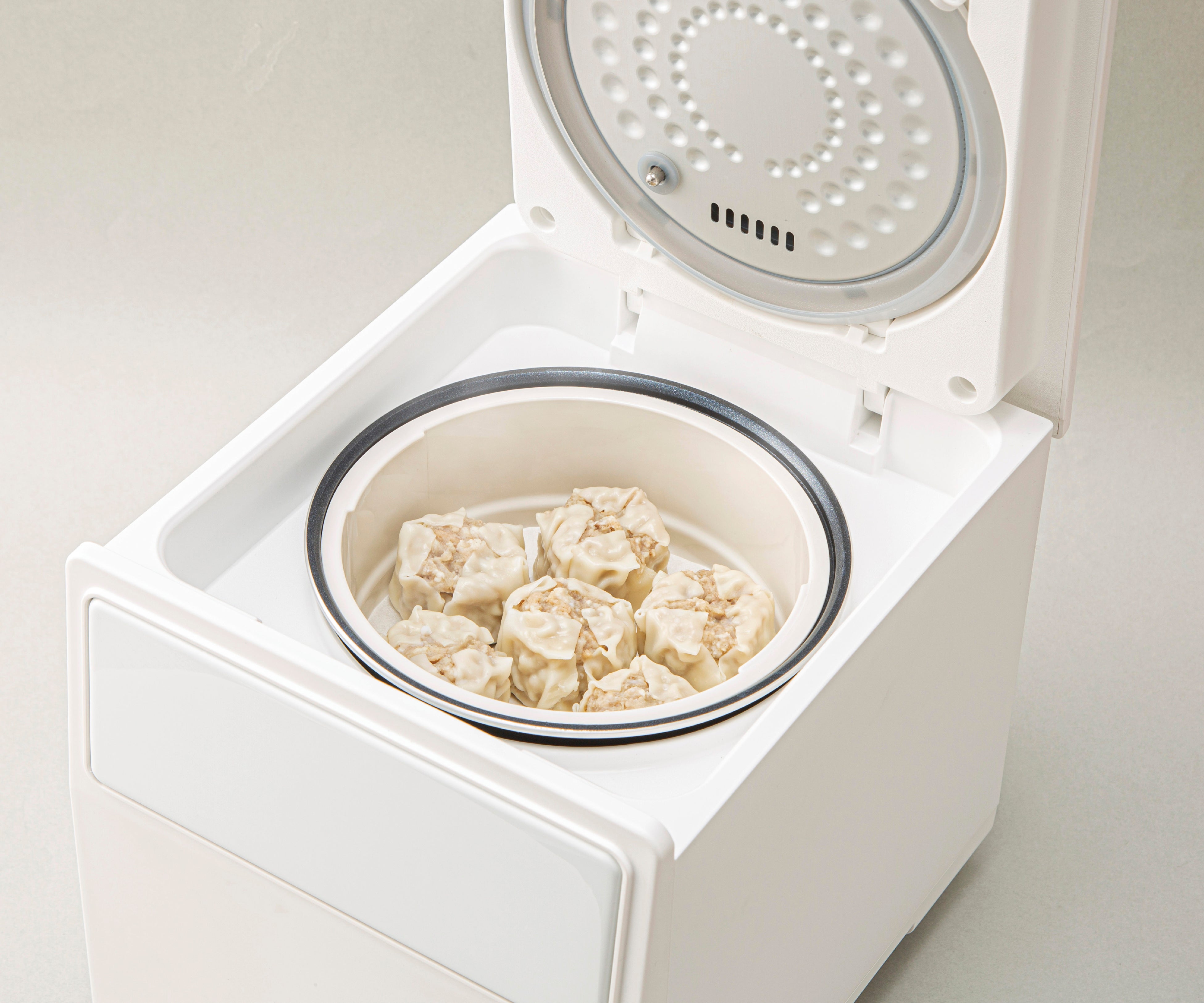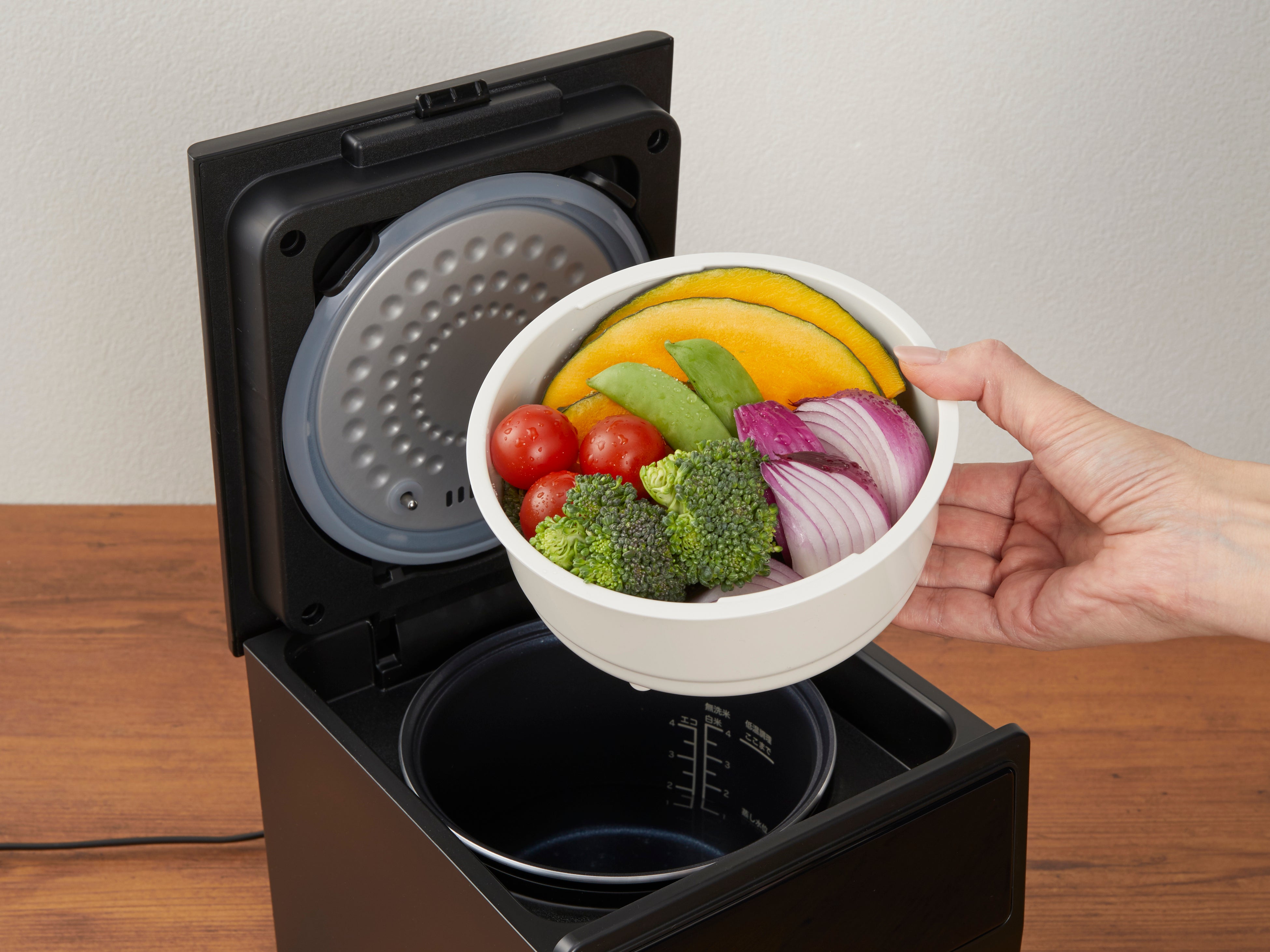 専用の蒸し器が付属。蒸し野菜やシュウマイなどの調理が可能な蒸しメニューを搭載。