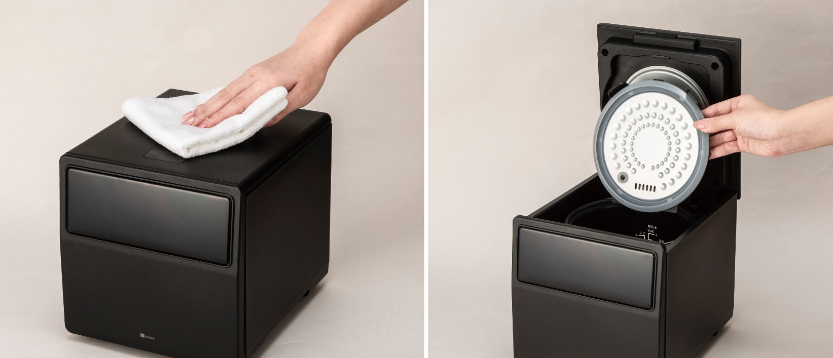 3合炊きモデルと同等サイズながら最大4号の炊飯が可能な省スペース設計になっており、キッチンの場所を取りません。またスクエア型の形状は天面や側面の汚れをふき取りやすくお手入れも簡単です。