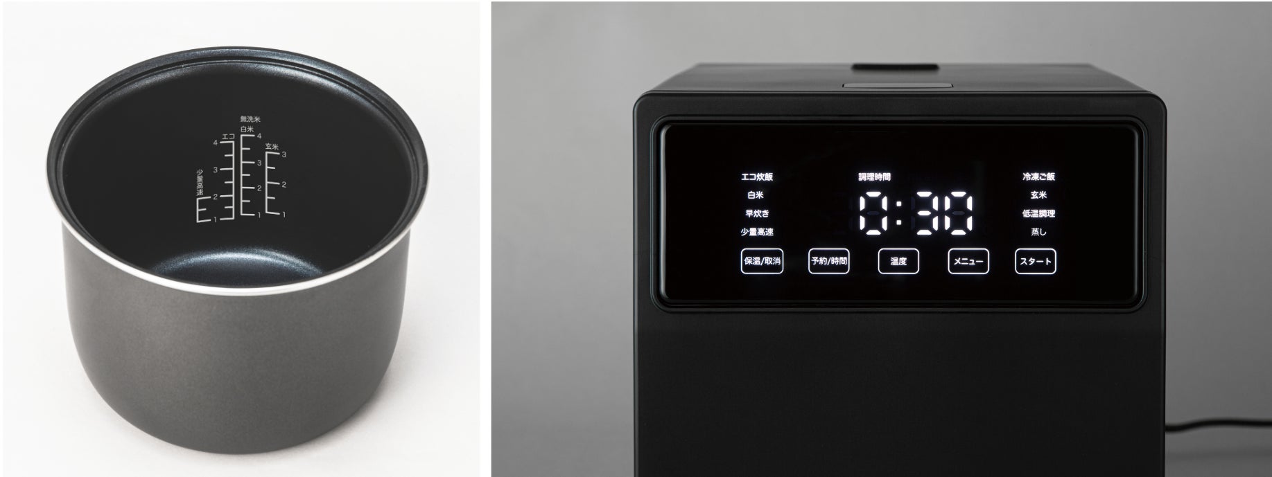 デザインはもちろん、品質にもこだわりました。約3mmの厚釜を採用しており、釜内の熱が逃げにくいため、お米の芯までしっかり加熱され、ふっくらとしたご飯に炊き上がります。
