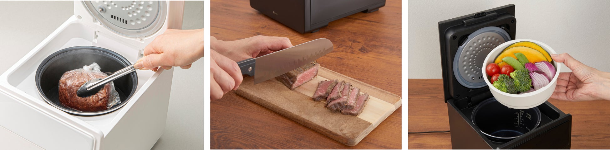 ローストビーフやサラダチキンなどを作ることが出来る低温調理メニューを搭載。