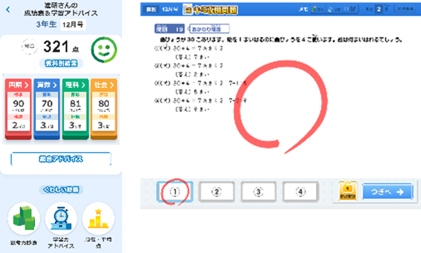 個別に算出した「診断結果」が閲覧可能です。また、結果に合わせて個人別に編集された「個別復習ドリル」もダウンロードいただけますので、現在の学習理解度を正しく把握した上で、お子さまに合った復習ができます。「進研ゼミ小学講座」は、全国の小学生が自信を持って新学年に進級いただけるよう支援してまいります。