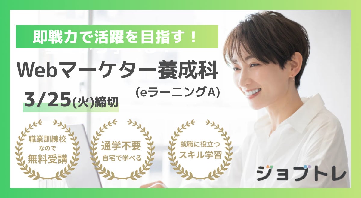 【SNS・広告運用や動画編集も!】Webマーケティングを実践的に学べる求職者支援訓練「即戦力で活躍を目指す!Webマーケター養成科(eラーニングA)」4/18開講!受講生募集開始