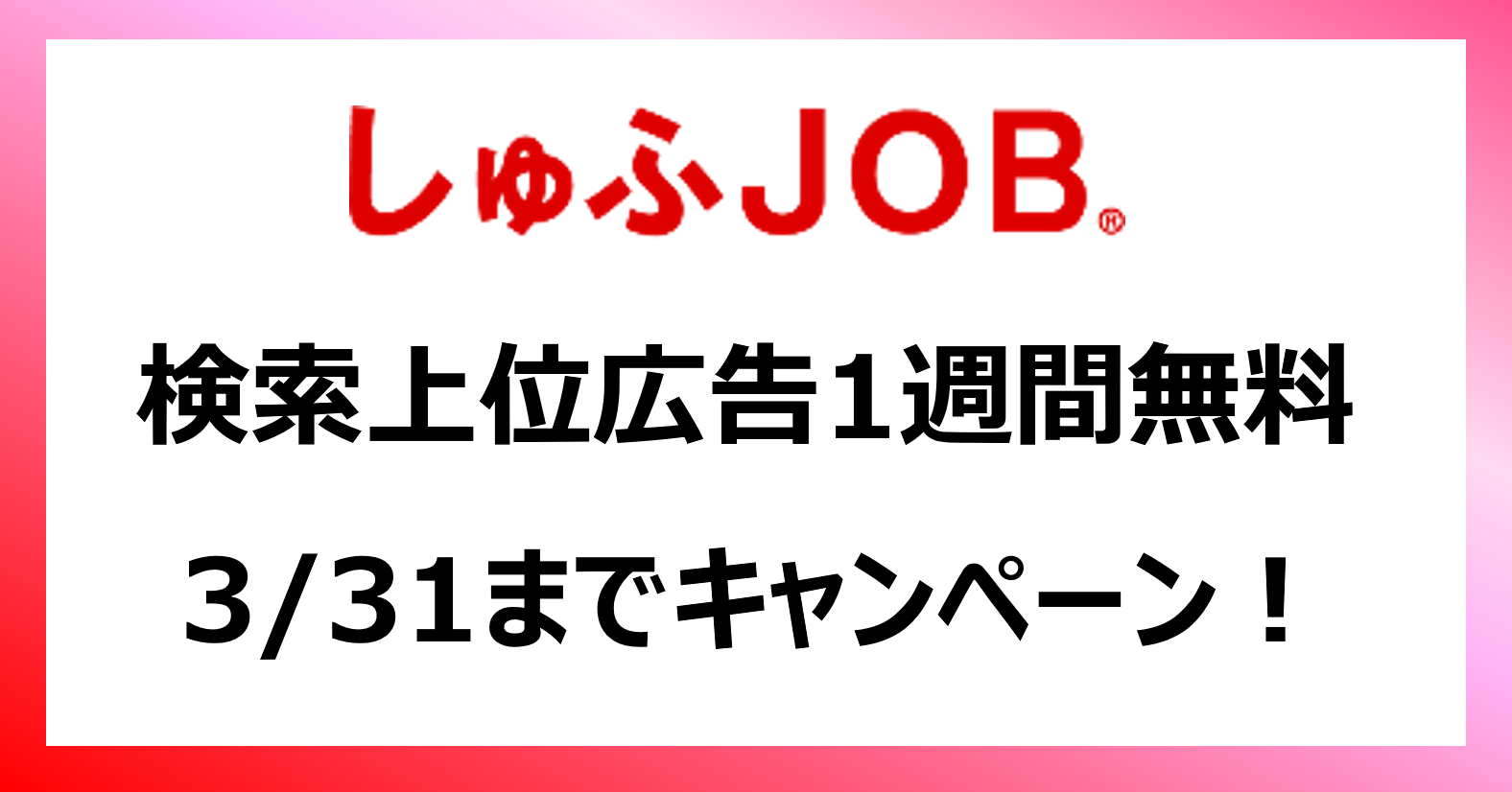 しゅふJOB【上場記念キャンペーン第2弾】検索上位広告1週間無料やトップバナー30%OFF!3/31(月)まで実施