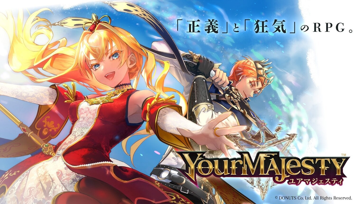 『ユアマジェスティ』は滅びに瀕した世界を舞台に転生した「異世界の王や女王」との物語を紡ぐ【「正義」と「狂気」のRPG。】です。DONUTSが企画・運営・開発・制作を行い、ゲーム情報に先立ち、メインテーマ曲、イメージソングやキャラクターソングを公開しています。