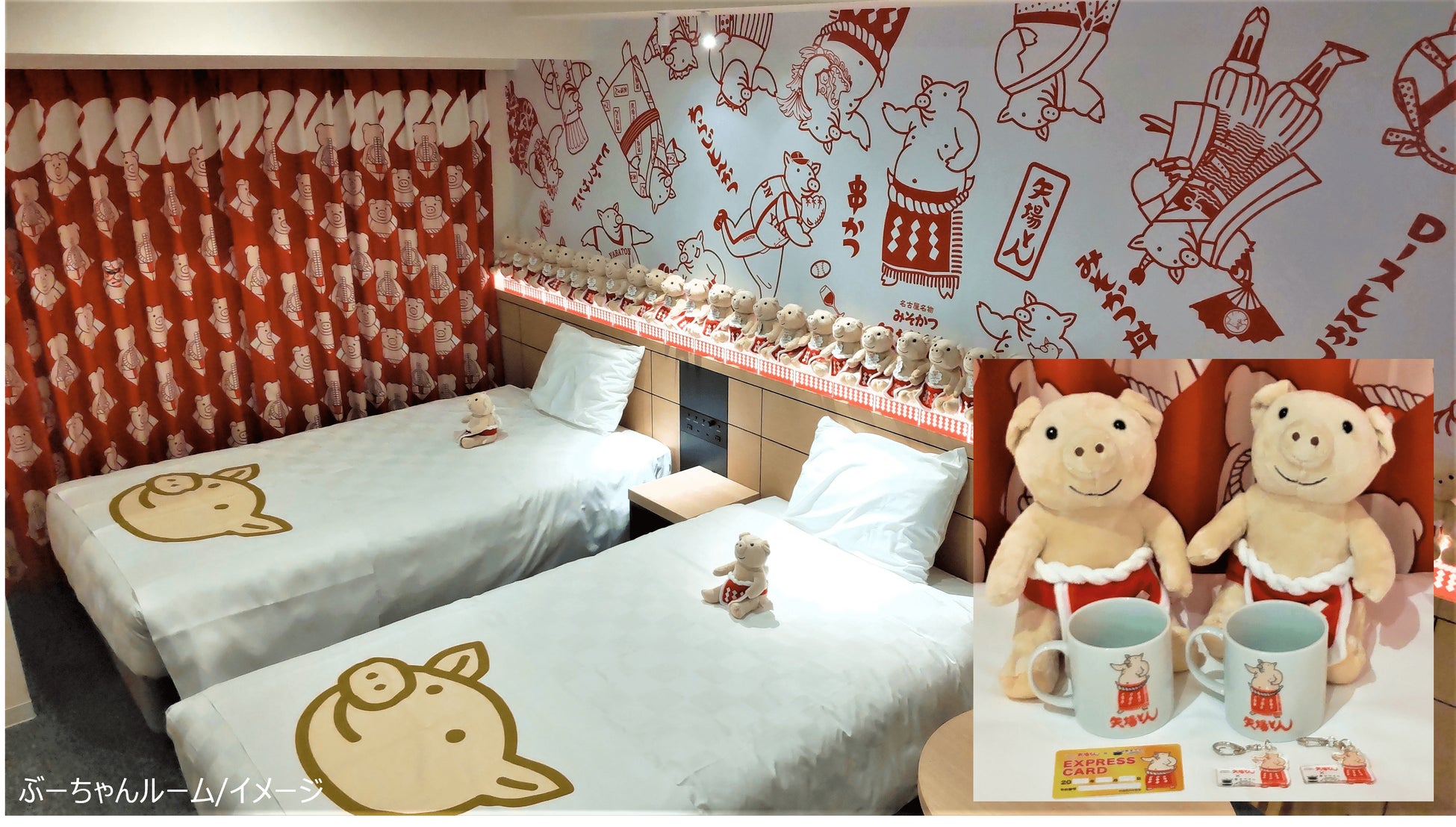 「変なホテルエクスプレス名古屋 伏見駅前」みそかつの「矢場とん」のキャラクターで飾った「ぶーちゃんルーム」発売