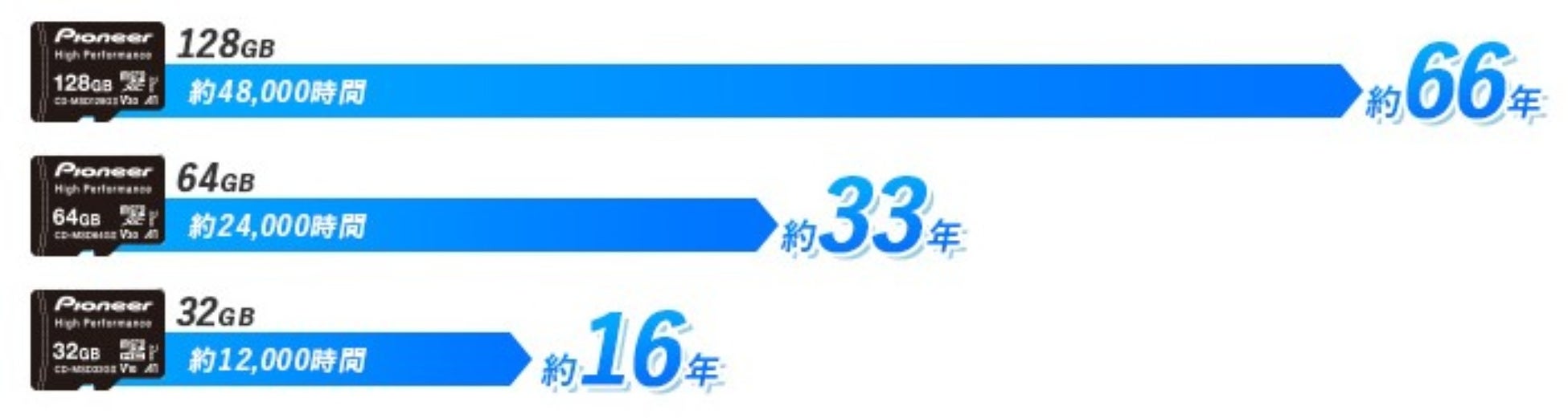 パイオニアは、連続録画や上書き保存に強いドライブレコーダー向けのmicroSDカード3種類(128 GB/64 GB/32 GB)を発売します。