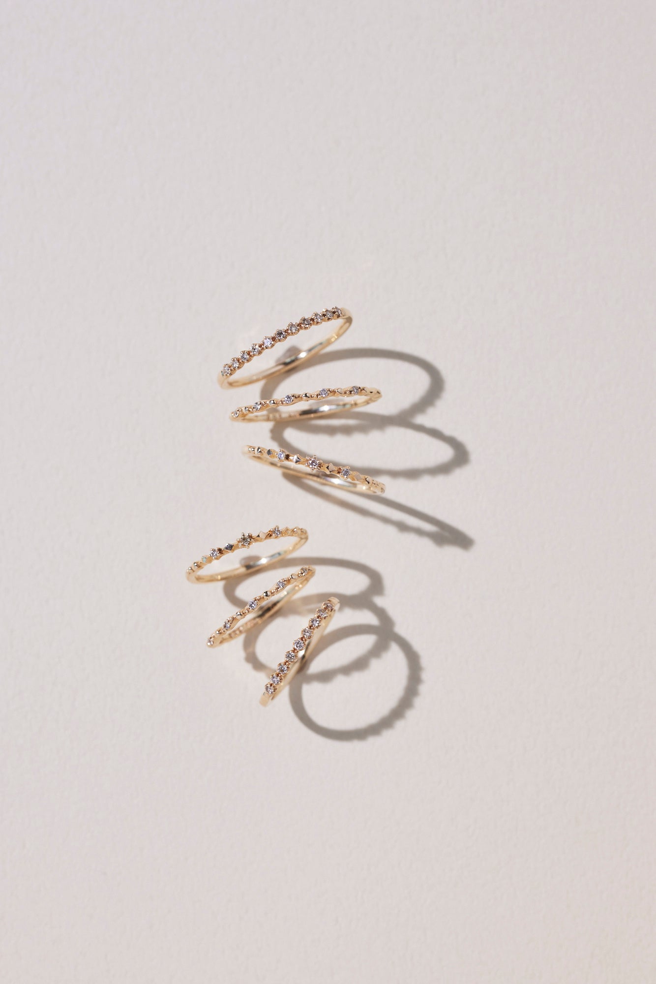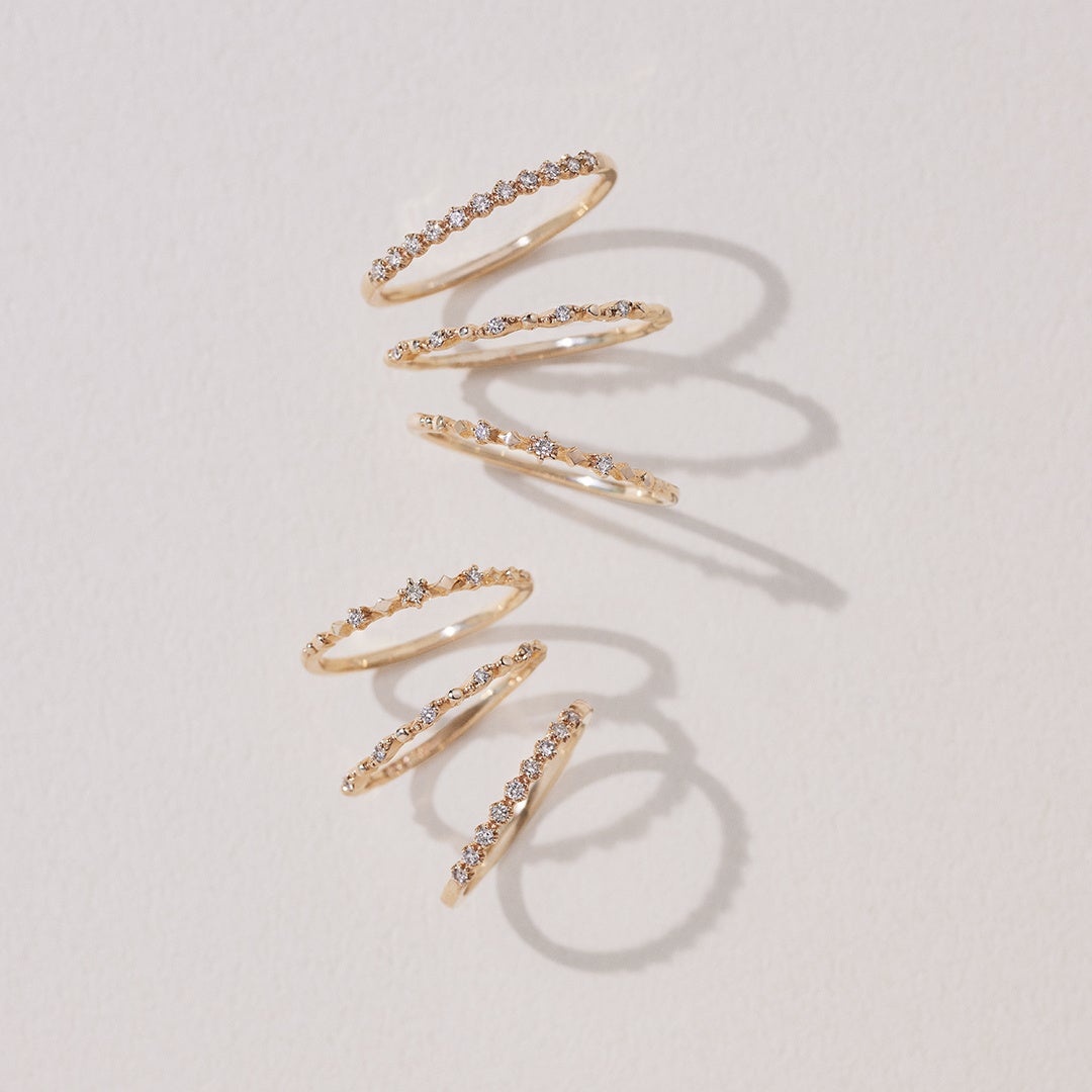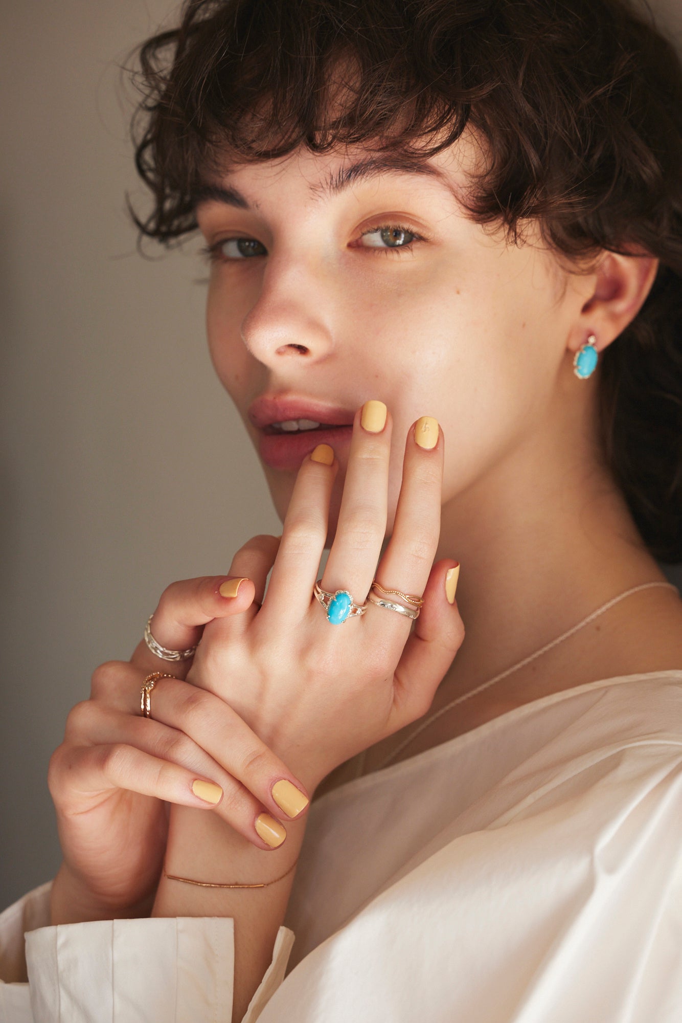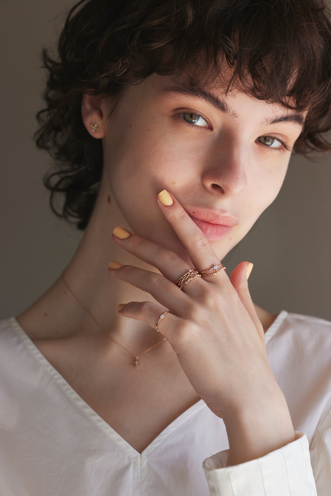 どんなコーディネートにも合わせやすいベーシックリング。シンプルながら個性が光るデザインに仕上げています。重ね着けはもちろん、1本でも満足できるアイテムに。