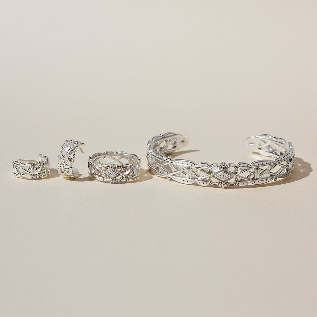 ネイティブアメリカンジュエリーのエッセンスをノジェスのフィルターを通して表現した、透かし模様が印象的。