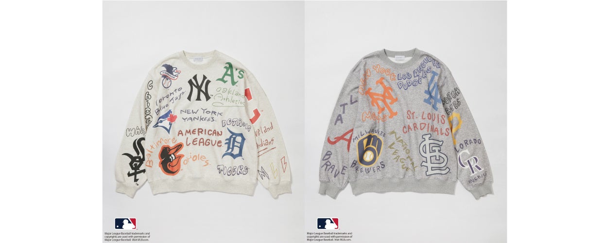 「JUNRED(ジュンレッド)」では、ロサンゼルス・ドジャース、ニューヨーク・ヤンキース、オークランド・アスレチックスの3 チームをイメージしたラインアップ。ユーズド感を演出したデザインに「JUNRED」らしいトレンドをプラスしたスウェットや、スタジアムジャンパーをベースにしたヴィンテージ感のあるルーズなレザーブルゾンを展開します。