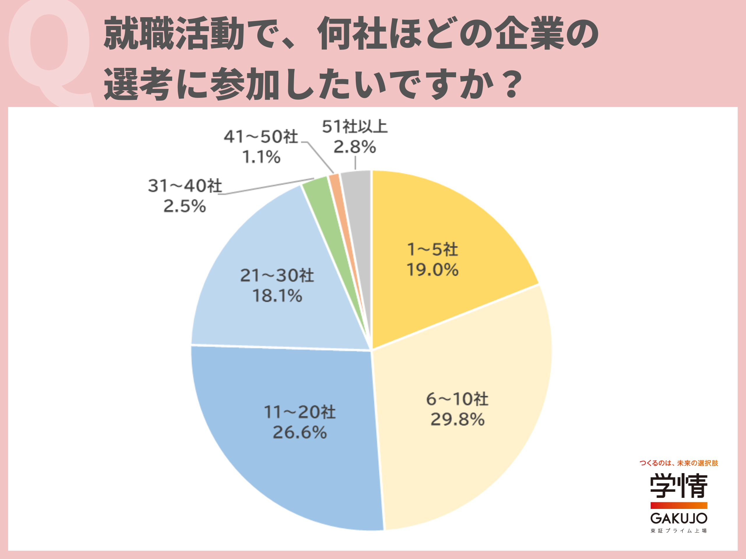 前年調査(2023年卒対象)と比較すると、「5社以下」の回答は6.2ポイント、「10社以下」の回答は4.6ポイント上昇しています。
