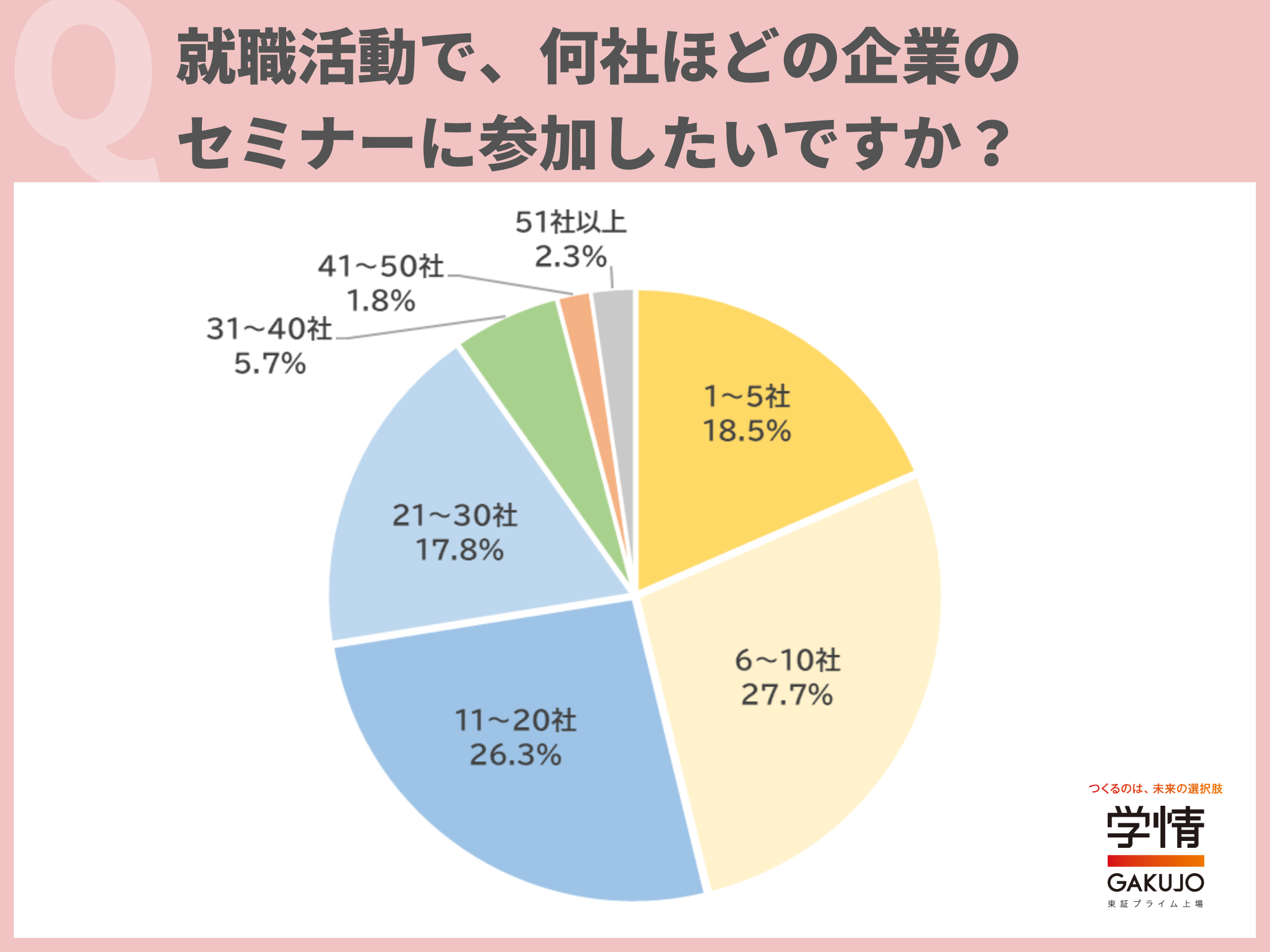 (2)セミナー参加を希望する社数は「6~10社」が27.7%で最多。「20社以下」の回答が72.5%