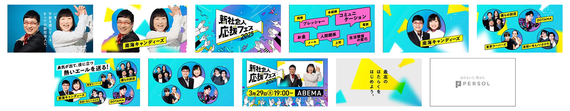 「いま、不安を感じている、すべての新社会人に。」をテーマとし、CM序盤は「コミュニケーション」や「未経験」など新社会人が抱える不安要因を表現。そして、南海キャンディーズを始めとした出演者を紹介し、3月29日(土)の新社会人フェスの告知を行うCMになっています。