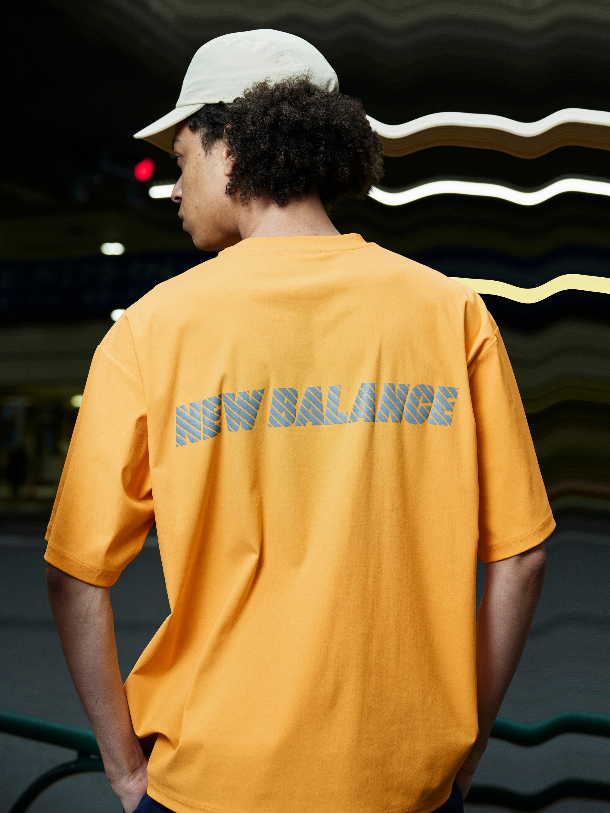 サープラスのトレーニングウェアにインスパイアされたTシャツ。メリルナイロンを使用した生地で、軽量でソフトな肌触りと快適性に加え接触冷感が特徴。胸と背中にはオリジナルグラフィックのリフレクトプリントが施され、、ファッション性の高いゆったりとしたオーバーサイズデザインとなっています。