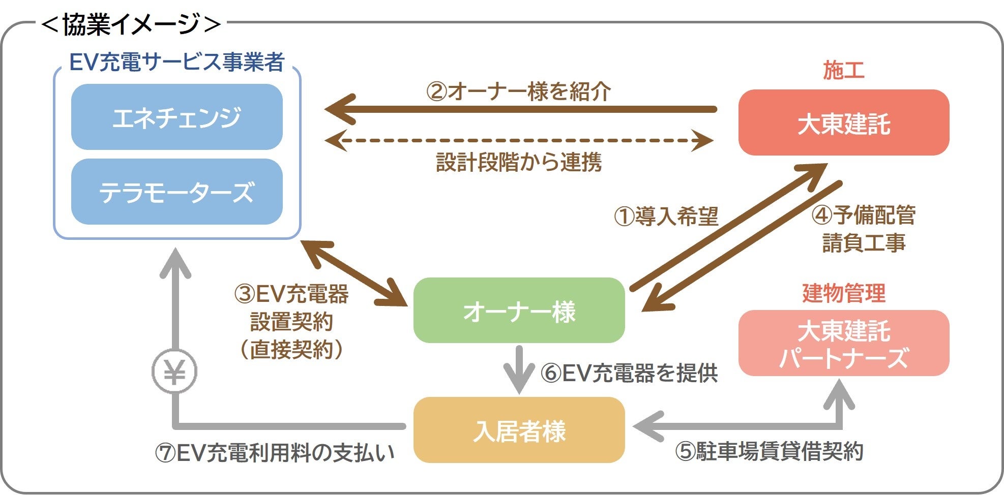 このたびの協業により、賃貸住宅の設計段階から両社と密接に連携することが可能となります。これにより、EV充電設備の導入を希望されるオーナー様には、建物の施工に合わせたスムーズな設置工事を提供できるようになります。
