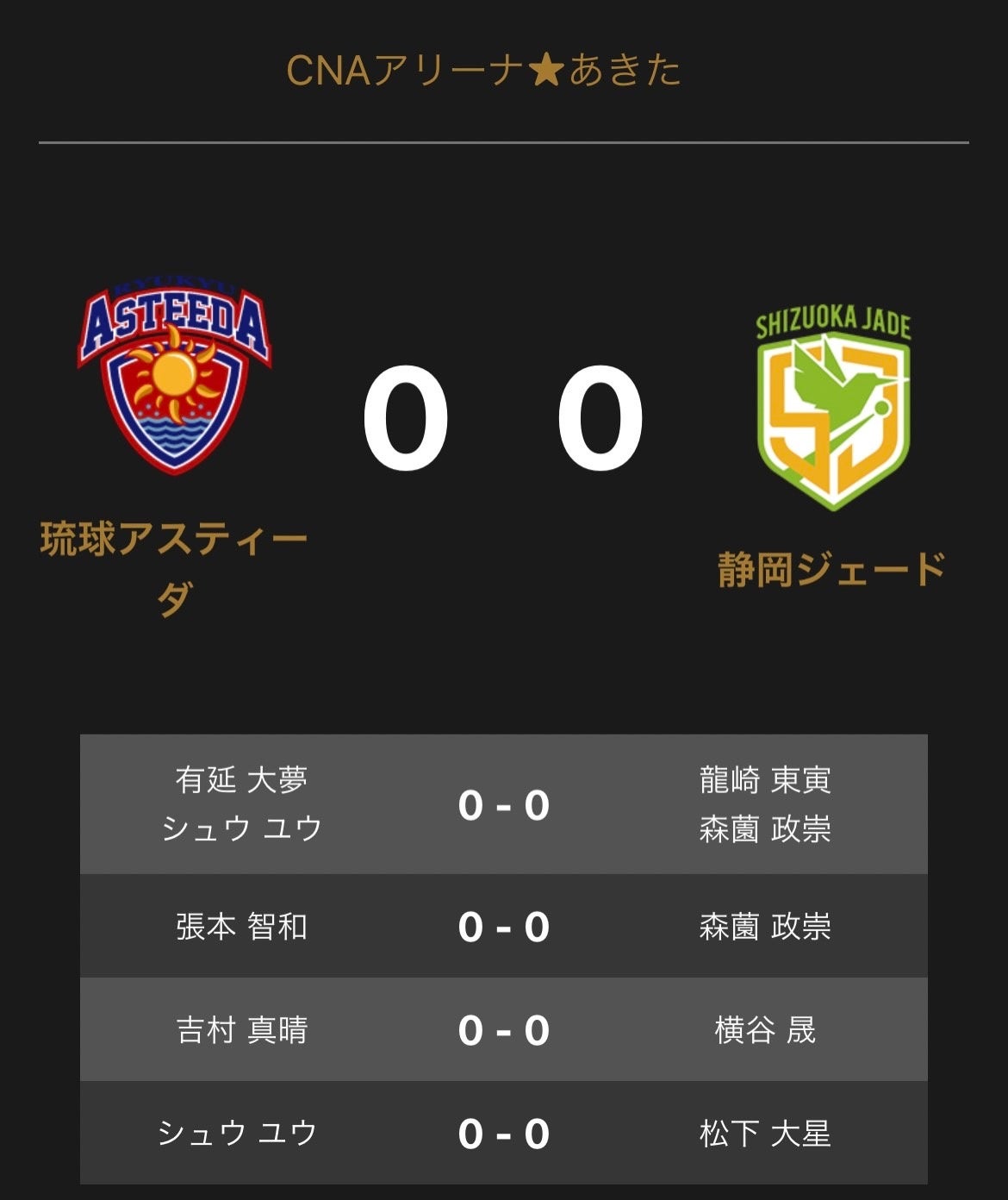 ノジマTリーグ 2023-2024シーズン 公式戦 8月11日開催 琉球アスティーダ vs 静岡ジェード オーダー選手発表