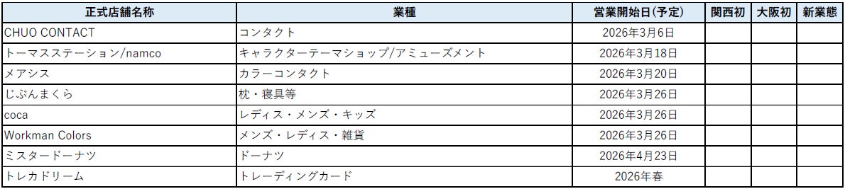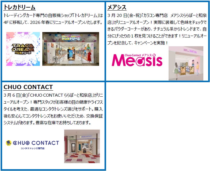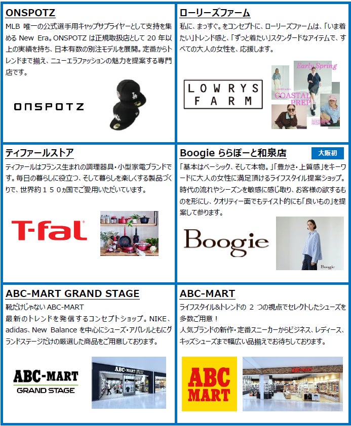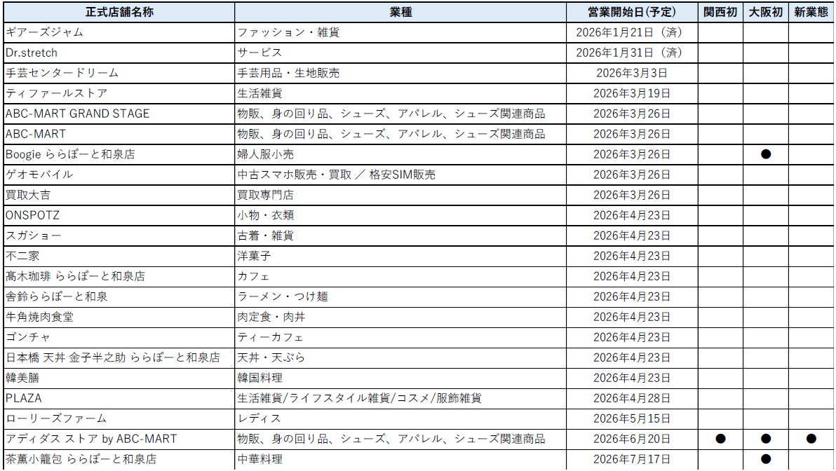 「三井ショッピングパーク ららぽーと和泉」開業以来2度目のリニューアル 関西初出店1店舗、大阪初出店2店舗を含む新規・改装 計30店舗が2026年3月26日(木)より順次オープン