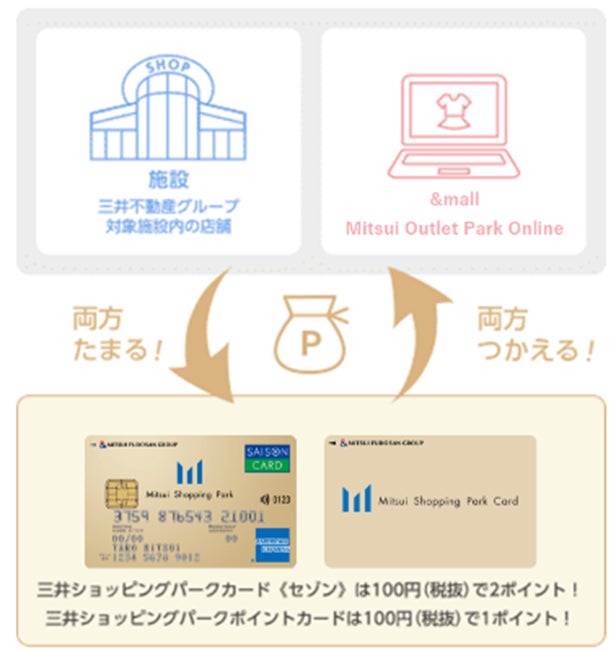 また、ご利用スタイルに合わせ、年会費無料でご利用特典多数の「三井ショッピングパークカード《セゾン》(クレジット機能付ポイントカード)」と「三井ショッピングパークポイントカード(クレジット機能なし)」をご用意しています。
