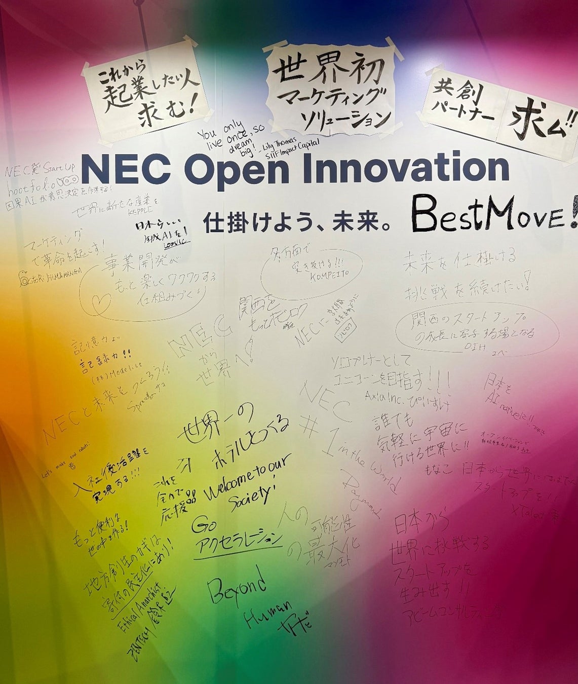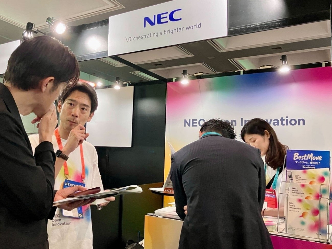 NECのブースにも幅広い層の方々にお越しいただき、NECが推進するオープンイノベーションの取り組みや、そこから生まれたマーケティング施策立案ソリューション「BestMove」の紹介を通して、多くの皆さまと直接対話する貴重な機会となりました。