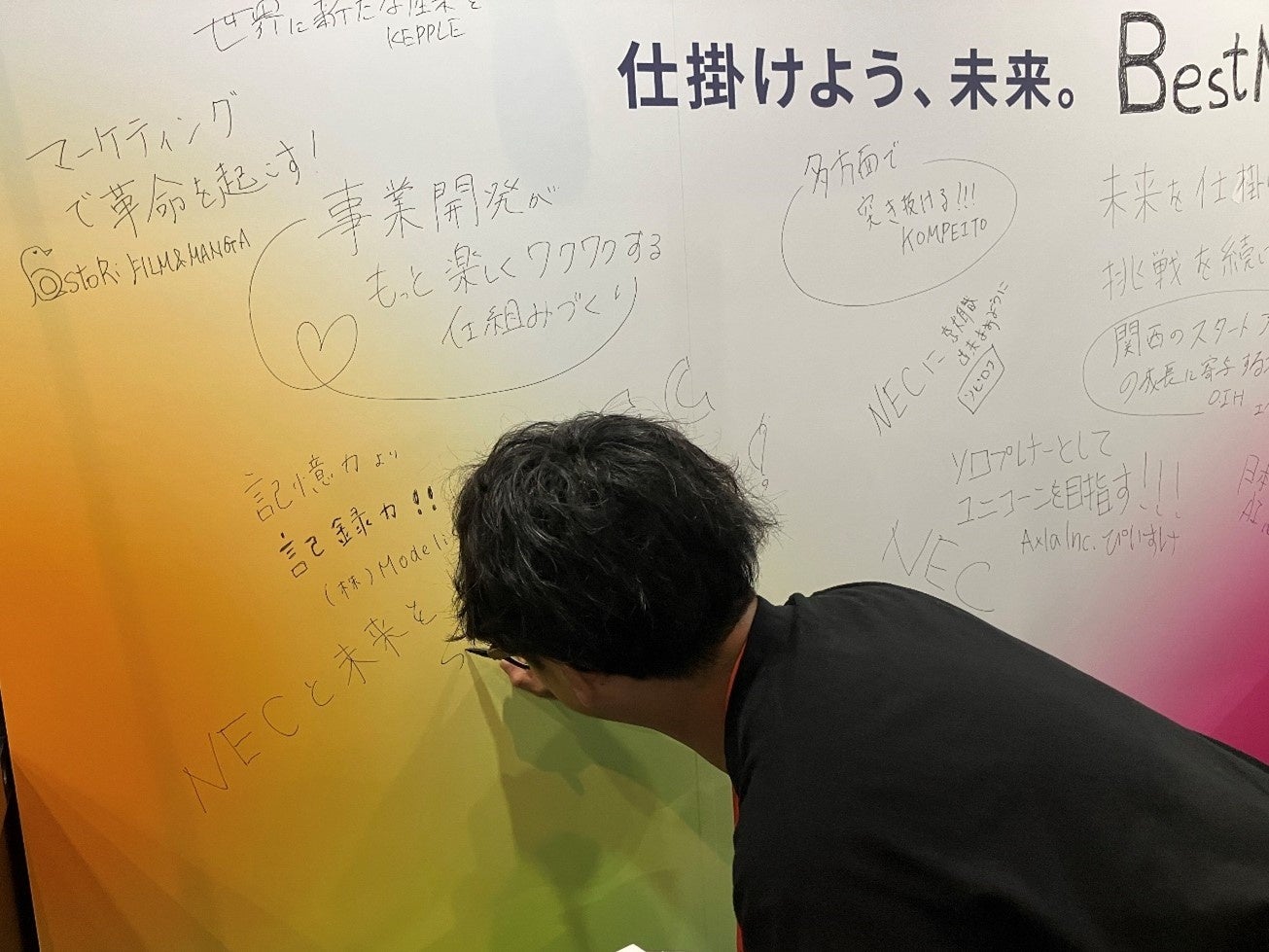 来場者ご自身の熱い想い、挑戦への決意、NECへのエールなどたくさんの言葉が壁一面に広がり、見るだけで未来にワクワクしてくるブースとなりました。