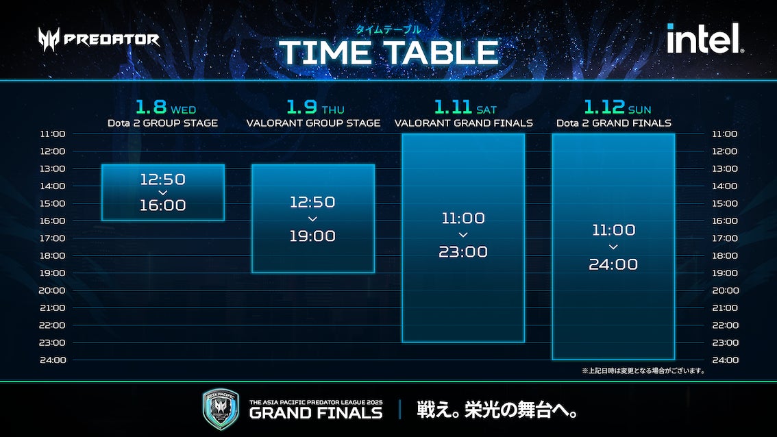 放送時間が変動する可能性がございます。Predator Japan公式Xから都度お知らせして参りますのでフォローしてお待ちください。