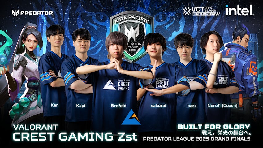 ヒューマンアカデミー株式会社 (東京都新宿区西新宿)が運営し、頂点に挑み続けるCREST GAMING Zstが、本年開催したPredator League 2025 VALORANT Japan Roundを見事勝ち抜きました。昨年2024は日本地域代表チームが準優勝を果たすという快挙を成し遂げ、今大会も日本地域への期待とともに、決勝大会の戦いへ期待が寄せられています。CREST GAMING Zstへ大きな応援をお願いします。
