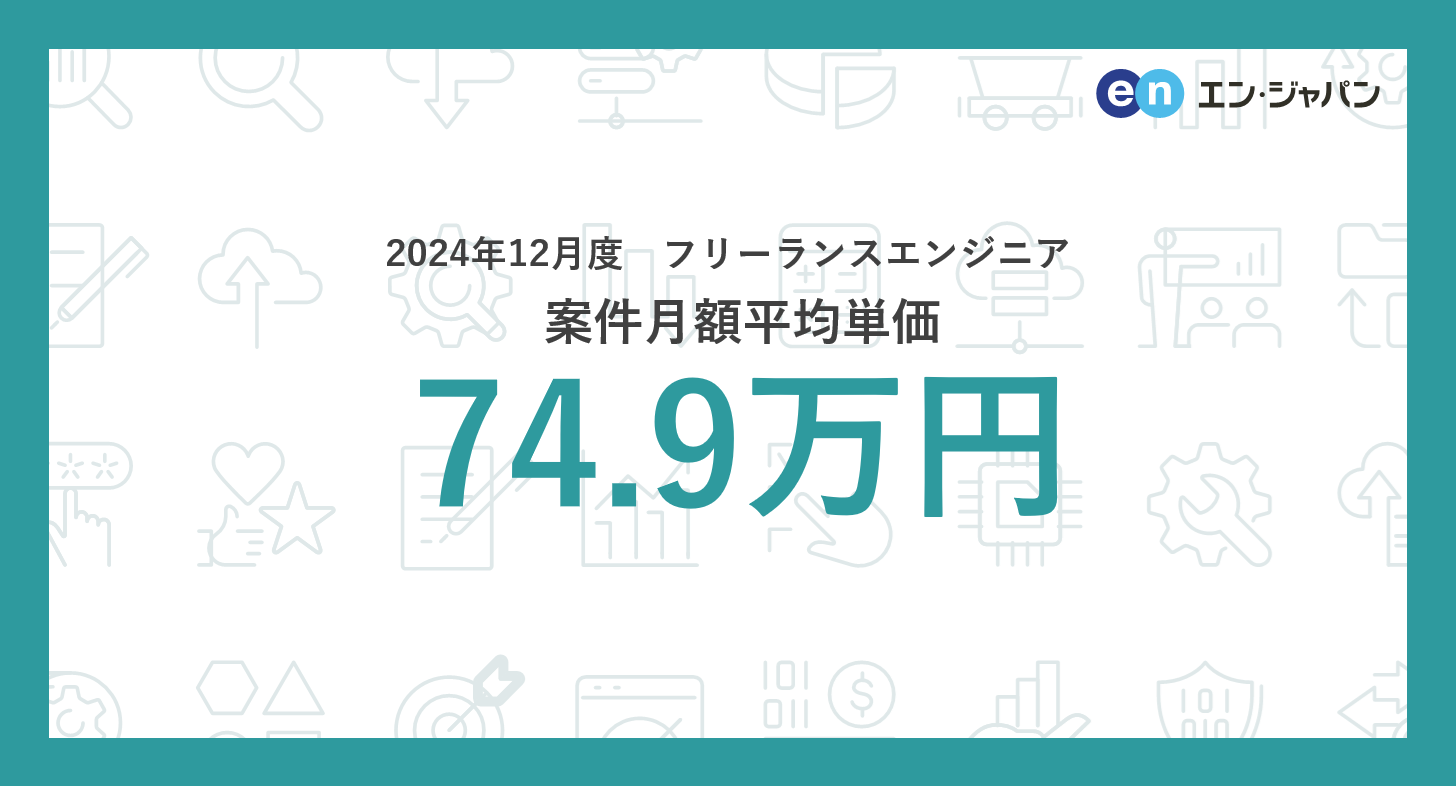 【2024年12月】フリーランス市場月額単価の動向 フリーランスエンジニア案件の月額平均単価は74.9万円
