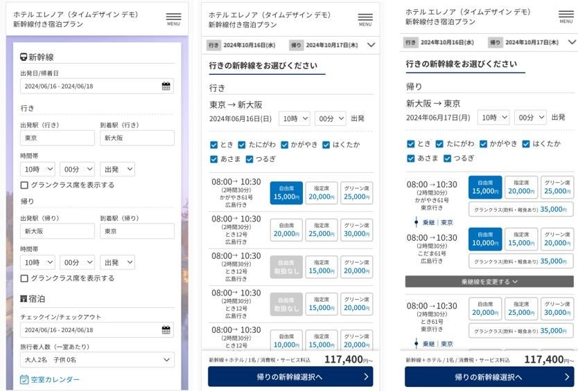 タイムデザインではこれまで、宿泊施設公式ウェブサイト内において、航空券やレンタカーと宿泊プランを組み合わせて販売できるダイナミックパッケージ・プラットフォームを提供してきました。今回、JR東日本が運営する「ビジネスえきねっと(※1)」のサービス導入により、これまで多くの宿泊施設から要望のあった「新幹線と宿泊プランの組み合わせ販売」が可能となりました(※2)。